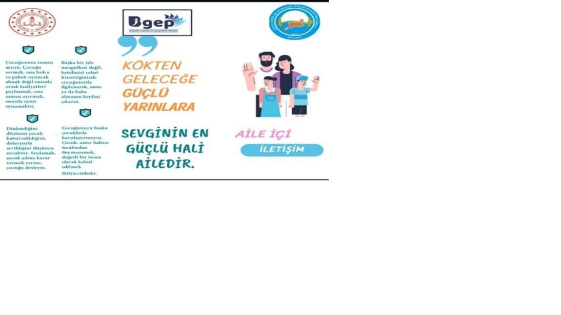 Aile , hem bireyin hem de toplumun sağlıklı gelişiminin merkezinde yer alır. Biz eğitimciler olarak bu anlayıştan yola çıkarak, ilan edilen Aile Yılı’nın ruhunu öğrencilerimizin ve velilerimizin lehine olacak şekilde değerlendirmek, aile bağlarını kuvvetlendirmek ve çocuklarımızın aidiyet hissini güçlendirmek için ''Kökten Geleceğe, Ailemle Güçlü Yarınlara Projesi!''uygulamaya koyduk.